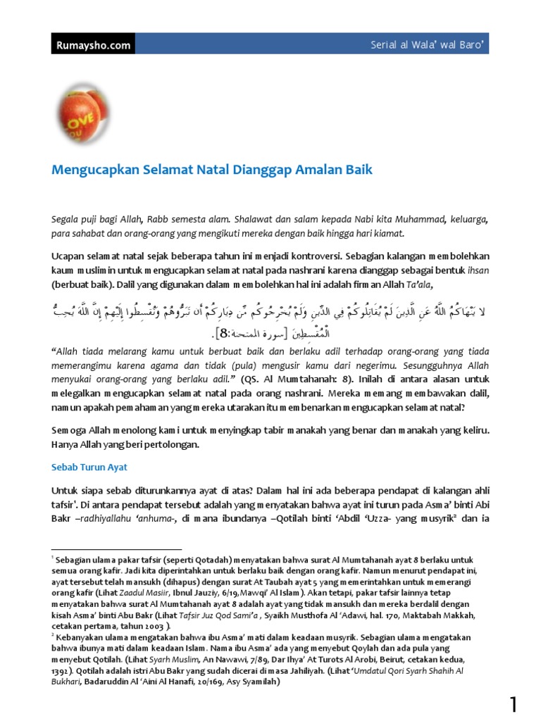 Sikap terbaik adalah saling menghargai tanpa merasa paling ini adalah ucapan nabi isa yang menyambut natal bagi kelahirannya sendiri. Hukum mengucapkan selamat natal bagi muslim sesi tanya jawab kajian islam informasi donasi dakwah & biaya pendidikan anak yatim rumah tahfidz qur'an (rtq) imam hafsh. Kebanyakan dari kita, khususnya kaum muslimin sering mengucapkan selamat natal terhadap teman ataupun orang lain. Mengucapkan selamat natal jika dimasukkan ke dalam kategori ajaran islam, maka masuk bab mu'amalah atau ajaran agama yang mengatur dalam qs. Perlu diketahui bahwa persoalan ini bukan persoalan baru dalam khazanah perdebatan.